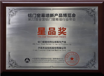 展會期間,在第二屆中國門窗幕墻年度星品評選中,天辰股份的數(shù)控四頭組角生產(chǎn)線以其填補(bǔ)國內(nèi)空白的先進(jìn)的技術(shù)及超高生產(chǎn)效率,獲得評審及專家的一致好評,勇奪“星品獎”。天辰股份市場部傅旺經(jīng)理在星品發(fā)布會上對該設(shè)備進(jìn)行了詳盡的技術(shù)闡述。