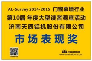 AL-Survey讀者調(diào)查活動全稱:中國幕墻網(wǎng)年度大型讀者調(diào)查活動暨“我最喜愛品牌”評選活動。(以下簡稱AL-Survey)我司作為設(shè)備領(lǐng)域的領(lǐng)先企業(yè),自上界獲得用戶首選品牌及市場表現(xiàn)獎之后,2015年再次憑借“天辰鋁機”品牌在市場中的優(yōu)異成績,強勢入圍2015-2016年度第11屆門窗幕墻品牌榜活動。通過近十萬名活動參與者的票選,AL-Survey將成為我司年度市場品牌推廣與產(chǎn)品銷售、服務(wù)質(zhì)量的晴雨表。