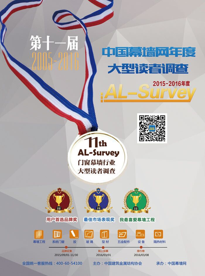 ????? “AL”是鋁門窗幕墻委員會aluminum的英文開頭首母,“AL”還代表鋁的元素符號,同時,“AL”是中國幕墻網(wǎng)域名ALwindoor的簡寫,“Survey”則代表調(diào)查。