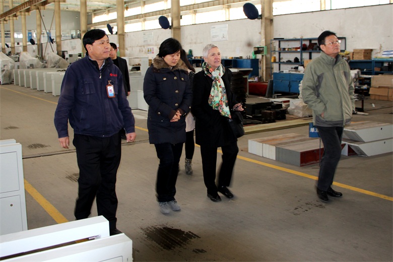 在參觀鋁機總裝車間時,Bernice Herris副校長對我公司目前處于國內(nèi)領(lǐng)先水平的鋁機產(chǎn)品表示了充分肯定,并對其研發(fā)、工藝流程進行了詳細(xì)詢問,公司生產(chǎn)副總亓愛林對考察團提出的問題一一作了解答。